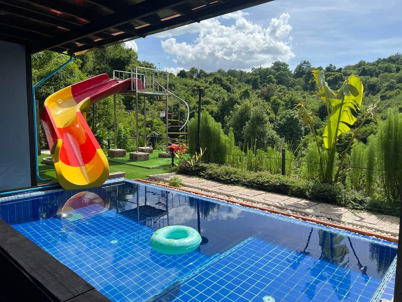 บริเวณบ้านพักพูลวิลล่า สามารถจอดรถได้หน้าบ้านพัก