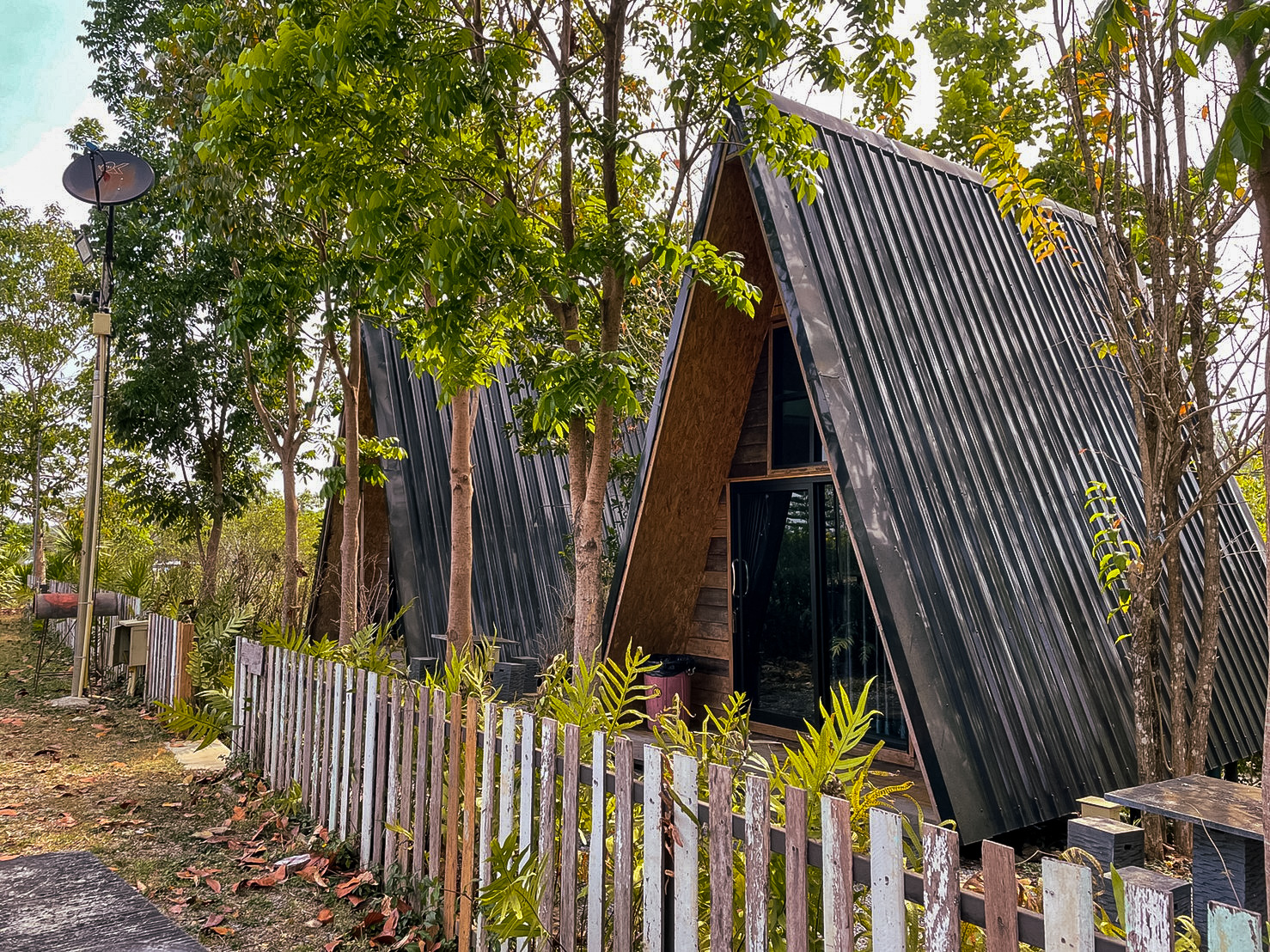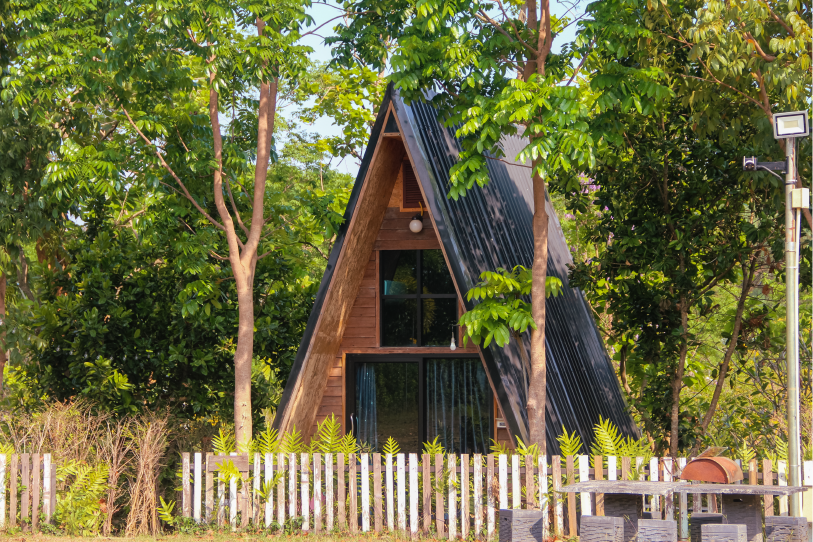 บ้านพักสไตล์สามเหลี่ยม ภายในมี 2 ชั้น สามารถเข้าพักได้ 2 ท่าน